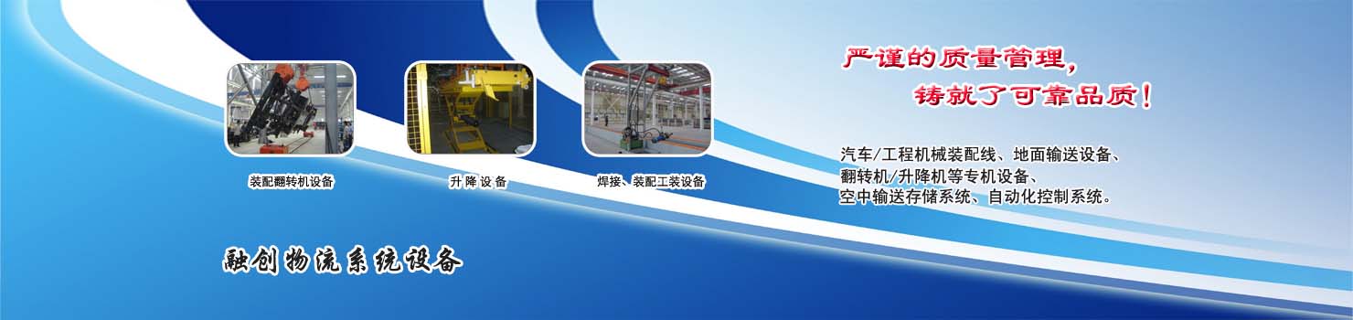 無錫市融創物流系統設備有限公司專業設計制造翻轉機,裝配翻轉機設備,各種生產線總裝線部裝線,是翻轉機的專業設計制造廠家,最新翻轉機價格?來自無錫融創;無錫融創公司主要產品系列:裝配翻轉機設備、升降設備、焊接裝配工裝設備,工程機械總裝部裝線、卡車總裝及部件裝配線、轎車總裝及部件裝配線、白色家電裝配線、農業機械裝配生產線、地面輸送設備、空中輸送設備、電動氣動小車等。無錫融創生產的各類專業成套設備已廣泛應用于轎車、卡車、客車、各類工程機械、發動機、車橋、農業機械、郵政、家電等行業,特別在工程機械產品裝配線、卡車生產裝配線領域,是國內最大的設備供應商之一。